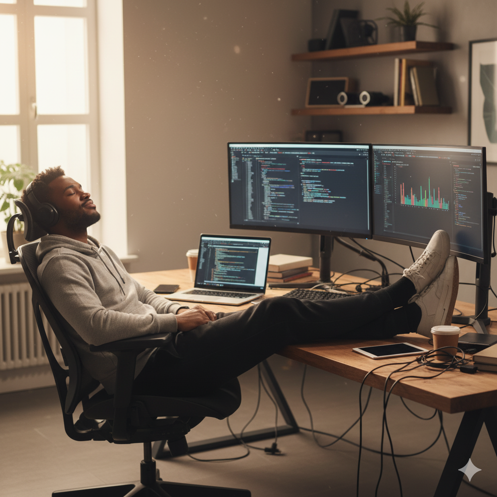 "If your finger slips and the camera goes live, this perfectly curated illusion is the only thing standing between you and professional embarrassment."